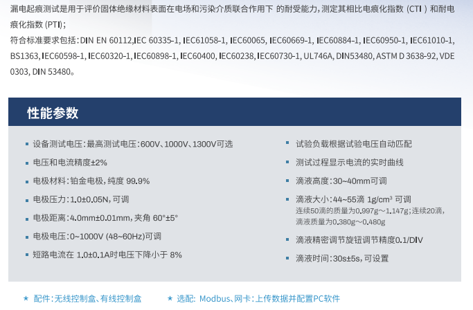 漏電起痕測試是用于評價固體絕緣材料表面在電場和污染介質聯(lián)合作用下